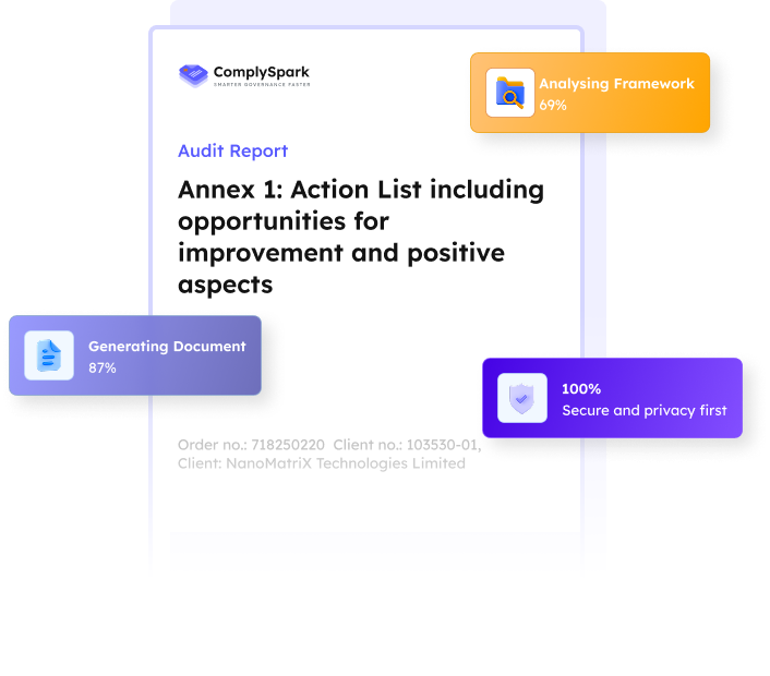 Generate expert-level impact assessment, reports, and compliance documents with ComplySpark.